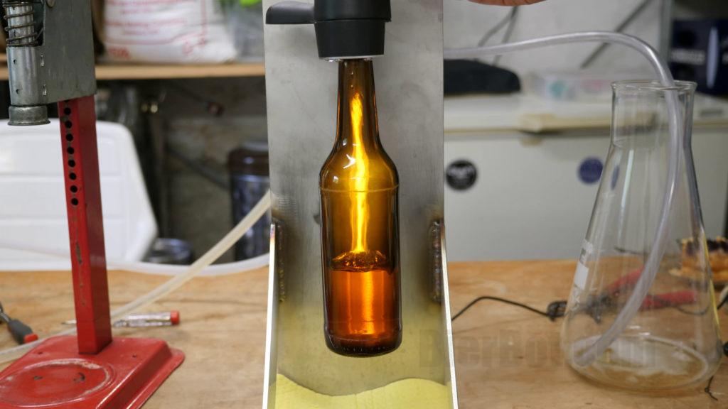 - The de-pressurization after bottleling was not smooth but abrupt. This yielded multiple foam explosions – some of them reaching our ceiling.
