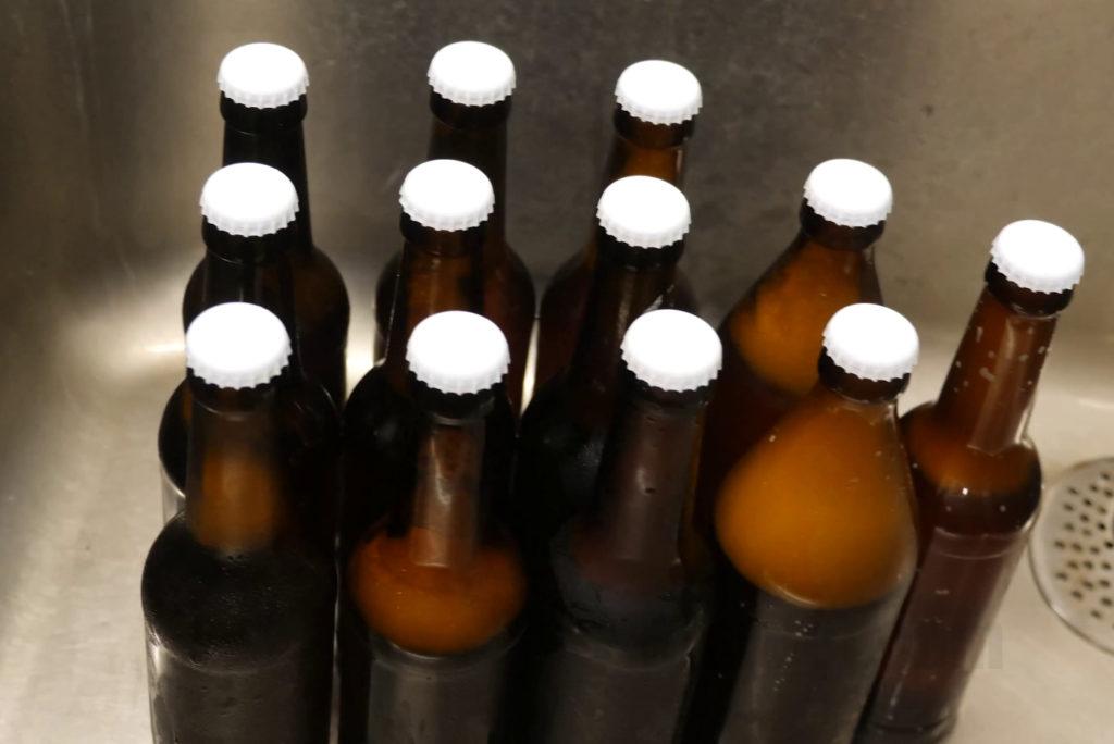 For our experiment we bottled 10*0.3l + 2 * 0.5l = 4l (135.26Oz). The losses with a high pressure beer and low skills on my side totalled to 0.2l (6.76Oz). This equals to losses of 5%.