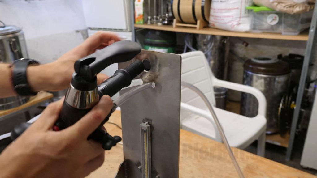 Before we received this marvelous piece of equipment, we had a DIY beergun-ish solution: It had two knobs/levers one for beer and one for CO2. It also had a valve where you can set the amount of gas / pressure leaving the bottle – but only with a screwdriver.